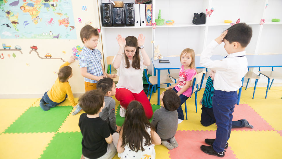 Если коммуникация и игра – это бисквитные коржи, то метод полного физического реагирования – вишенка на торте. Суть метода заключается в том, что слова и предложения нового языка запоминаются через движения, пантомиму и жесты. Например, когда мы хотим познакомиться с глаголами движения, мы не просто произносим слова, но прыгаем и кричим слово “jump” и бегаем, произнося слово “run”. Метод прекрасно сочетается с игровым подходом и очень нравится детям!