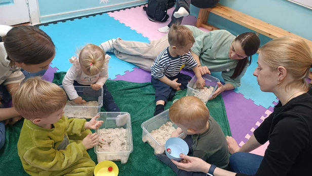 В группе занимается до 5 детей с мамами и без